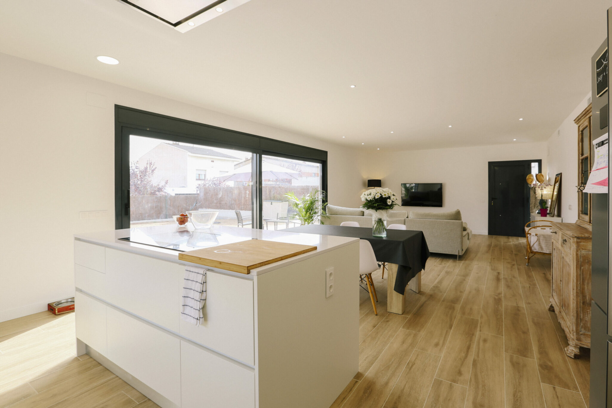 Configuració: 3 habitacions dobles, 2 banys (un en suite amb vestidor), espai obert de dia amb cuina, garatge per a 1,5 cotxes